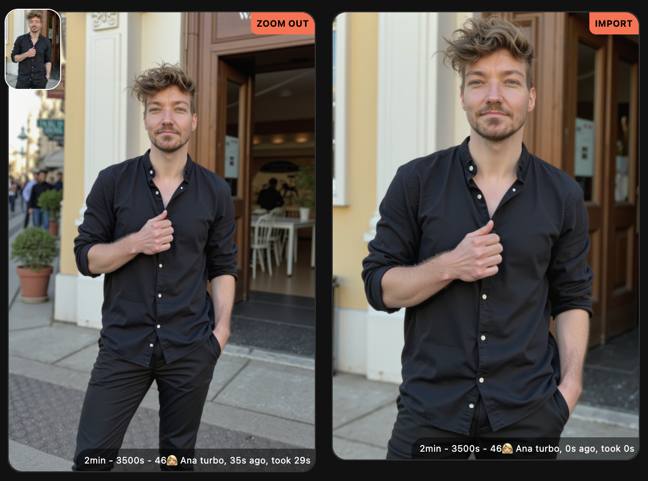 With Photo AI you can also upload your own images (like real photos you made or literally any image you can think of) and uncrop them with [ Zoom out ]