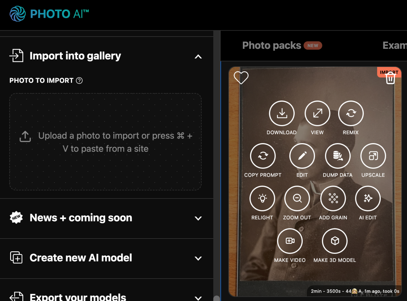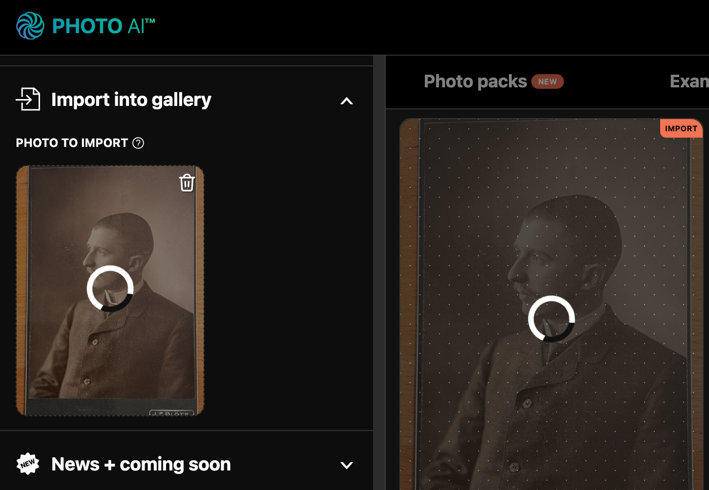 Go to the Gallery tab in Photo AI and click [ Import to Gallery ]. Upload your original old or damaged photo. This can be a scan of a printed photo or any image file.