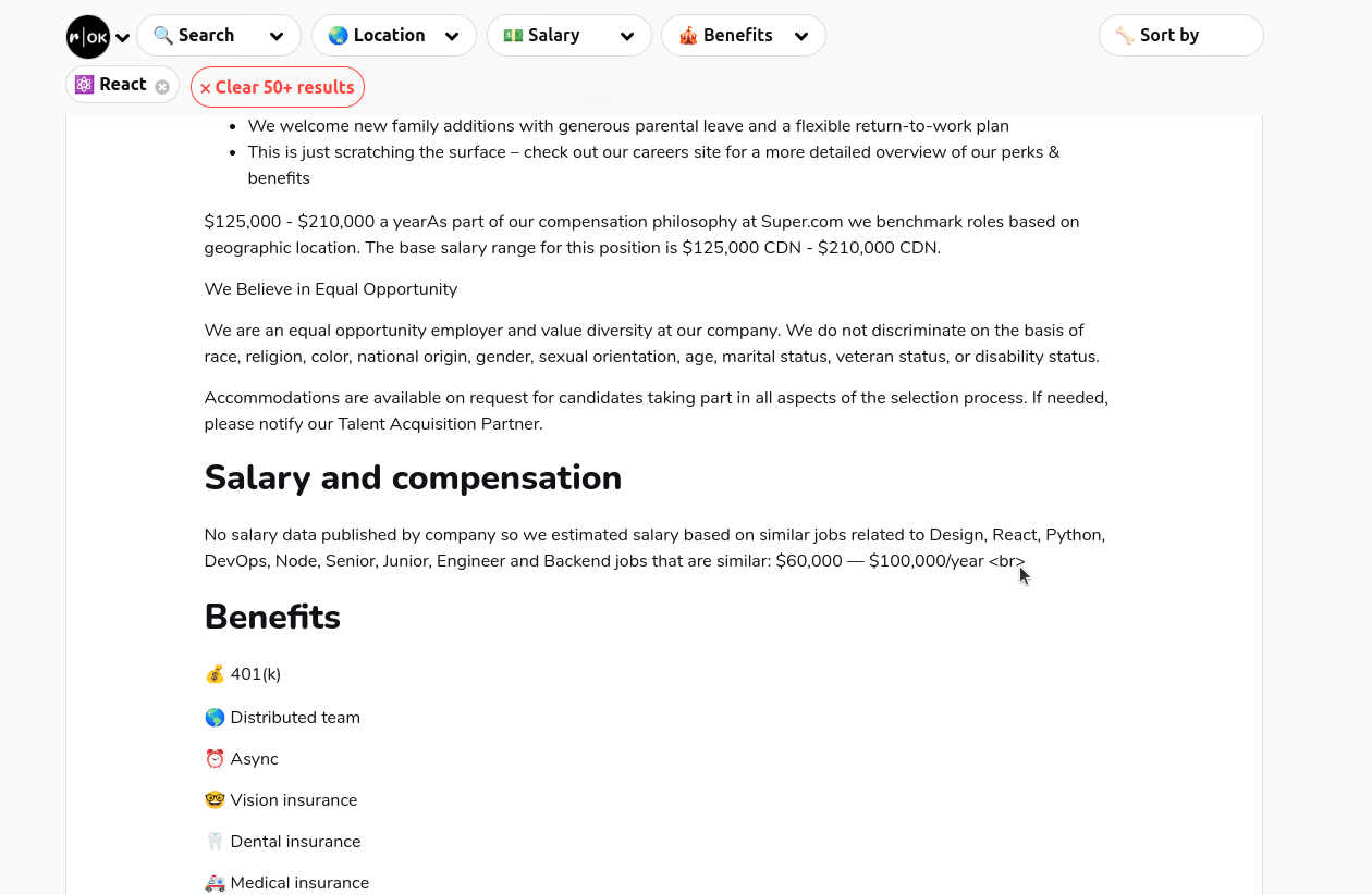 while i was looking for opportunity to learn on remote.ok I noticed a minor formatting issue on the job listing page in the "Salary and Compensation" section, there appears to be an<br> html tag at the end of the content affecting the visual presentation of the section.