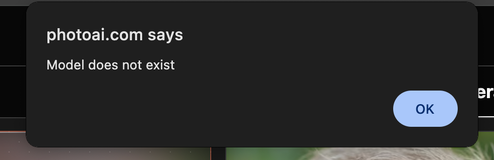 I am getting a JS Alert of "model does not exist" for all of my models. This is my third model and the initial images have generated but I am unable to make any new photos. The first two models I created all worked as intended at the time, but are also not working any more.