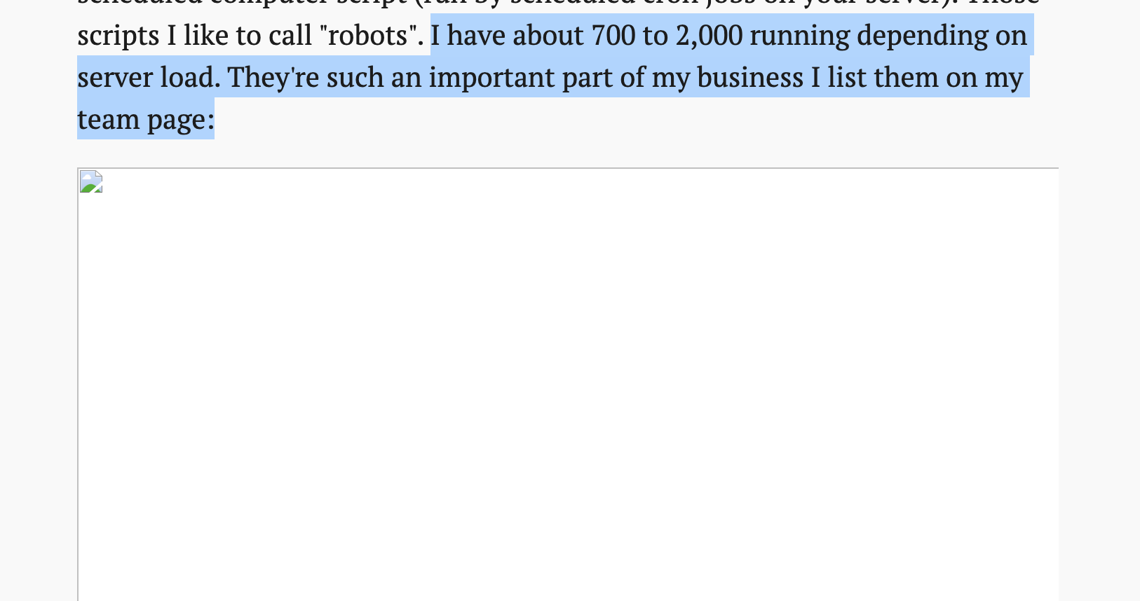 I have about 700 to 2,000 running depending on server load. They're such an important part of my business I list them on my team page: (((the picture here is not loading)))