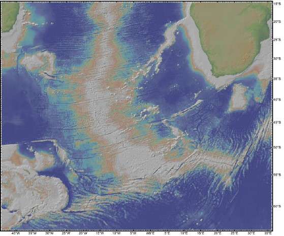 The following page has a topographic map of the South Atlantic and neighbouring land-